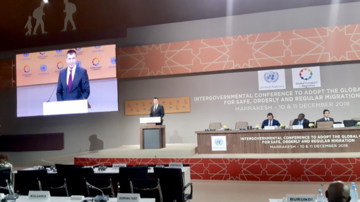 Министар за рад, запошљавање, борачка и социјална питања Зоран Ђорђевић говорио је на Конференцији о глобалном споразуму о сигурним, уређеним и легалним миграцијама у Мароку где је поручио да је феномен миграција и даље једно горуће питање које представља политички и социјални изазов и истакао да верује да ће овај скуп бити корак напред ка постизању преко потребног свеобухватног, хуманог и одрживог решења за питање миграција.
