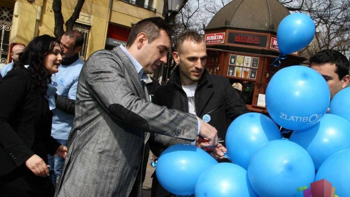 Вулин је на централном градском тргу, заједно са домаћинима из Градског удружења за помоћ особама са аутизмом, пустио у ваздух балоне плаве боје, као симболе пријатељства са особама са аутизмом и њихове интеграције у друштво.