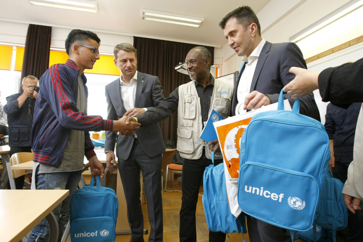 „Овaj тренутак представља праву прилику да заштитимо право на образовање деце избеглица и миграната. За њих је образовање од суштинског значаја, јер им пружа стабилност и осећај нормалности. Образовање је једна од ретких ствари које могу да понесу са собом у своје будуће животе. УНИЦЕФ блиско сарађује са Министарством просвете, науке и технолошког развоја, Министарством за рад, запошљавање, борачка и социјална питања и Комесаријатом за избеглице и миграције, како бисмо осигурали да ове године најмање 700 деце може да иде у школе на локацијама у којима постоје прихватни центри. Обезбеђујемо подизање капацитета у школама – за око 500 чланова школских тимова из око 90 школа из 17 локалних самоуправа, као и ранчеве и школски прибор за избегличку и мигрантску децу школског узраста,“ изјавио је директор УНИЦЕФ-а у Србији Мишел Сен Ло.