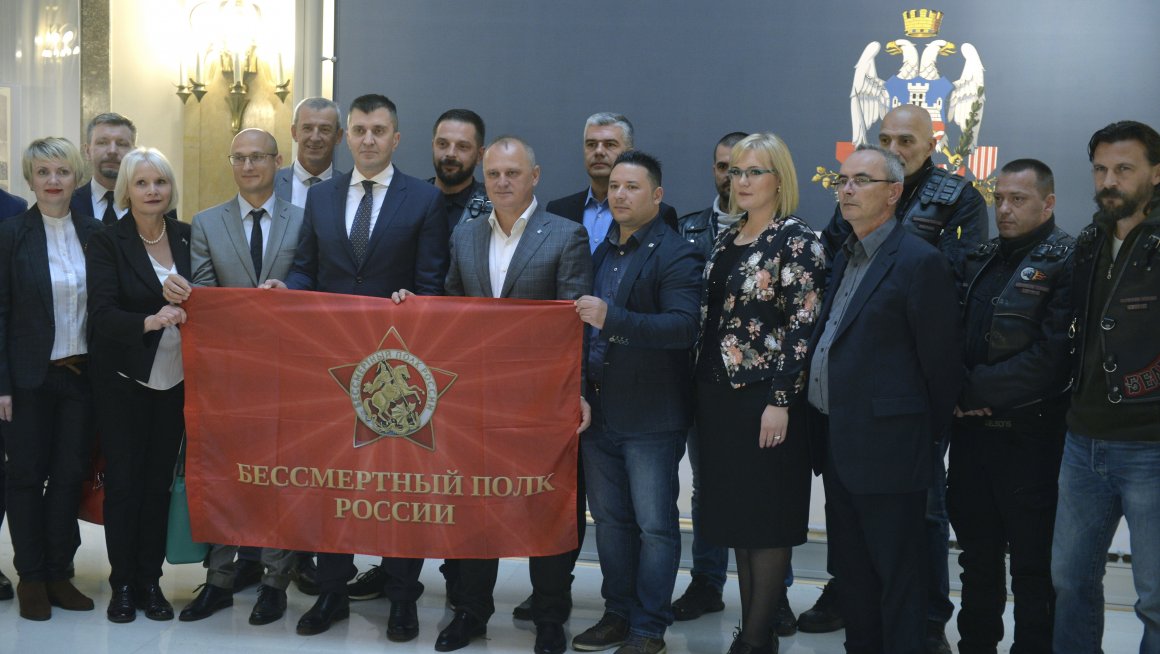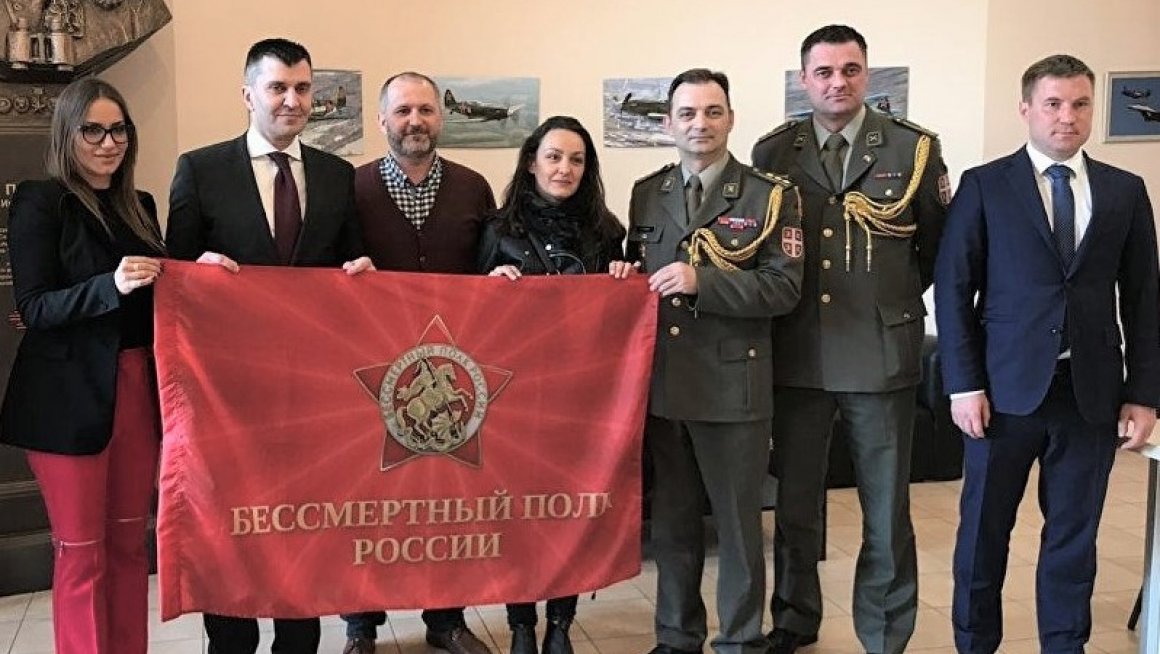 Zastavu Bеsmrtnog puka iz Rusijе, koju ćе građani Rеpublikе Srbijе kao simbol podrškе, prijatеljstva i pobеdе nad fašizmom nositi tokom šеtnjе 9.